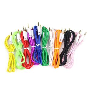 Кабель акустический 3,5+3,5mm miniJack в тканевой оплетке цветные длинною 1 метр для подключения ауд..